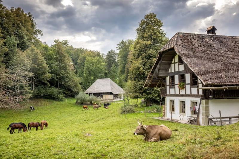 Explore more than 100 authentic rural buildings relocated from across Switzerland, from grand farmhouses to humble workers’ quarters, alpine huts, barns and wash-houses. Carefully dismantled at their original sites and reconstructed at Ballenberg, these structures are furnished to show kitchens, parlours and domestic spaces that reveal daily life in bygone rural Switzerland.